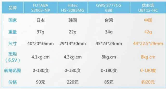 國內外舵機參數性能價格比較