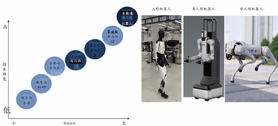 國內(nèi)機器人大多瞄準三類下游進行布局,產(chǎn)品形態(tài)由非人形到類人形逐步拓展至雙足人形。人形機器人可